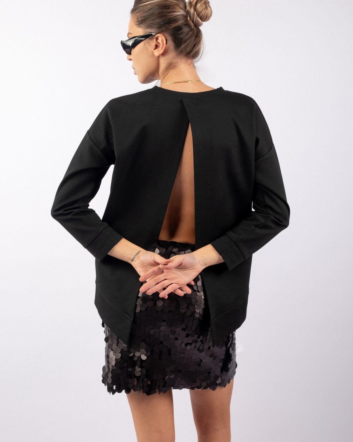 Sırt Dekolte Detaylı Sweatshirt Siyah