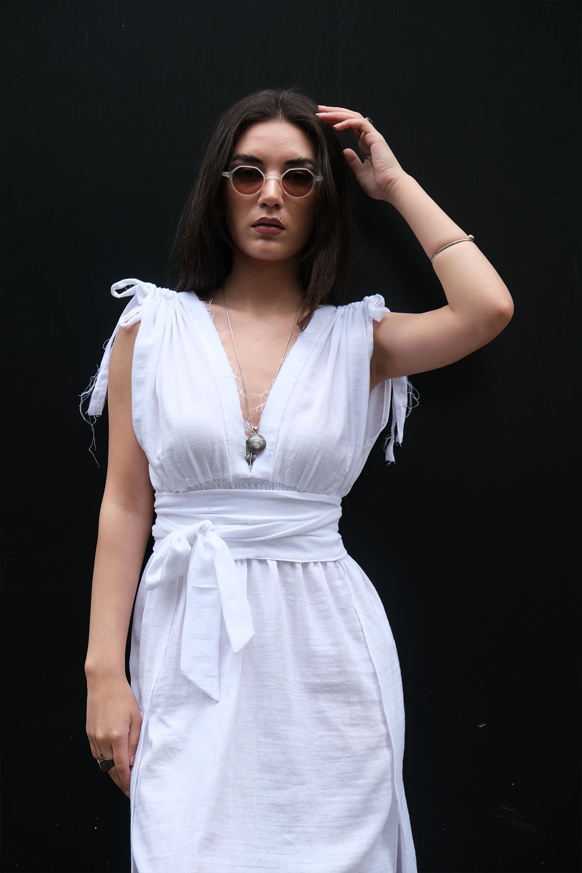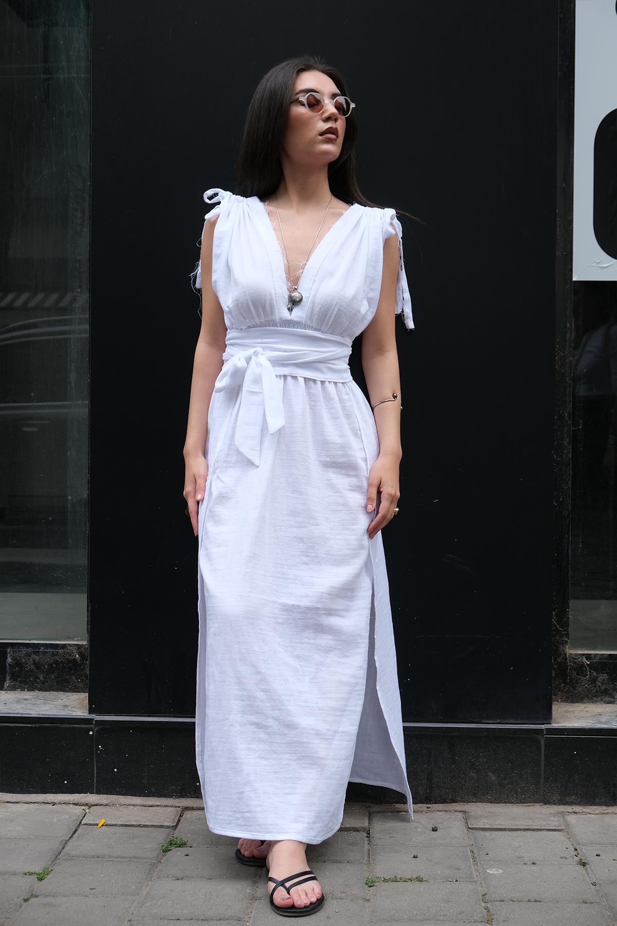 Kadın Müslin Maxi Elbise Beyaz